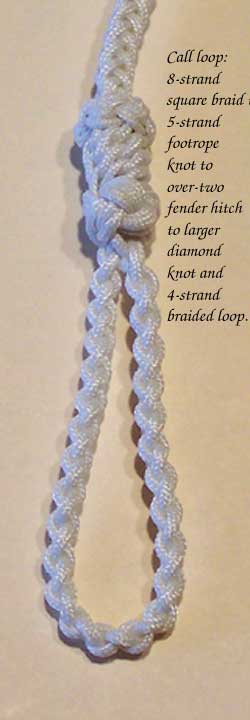 Lanyard call loops may be had made up as a slip-fit through a footrope knot or as the traditional "hangman's" setup where the call