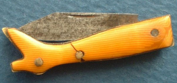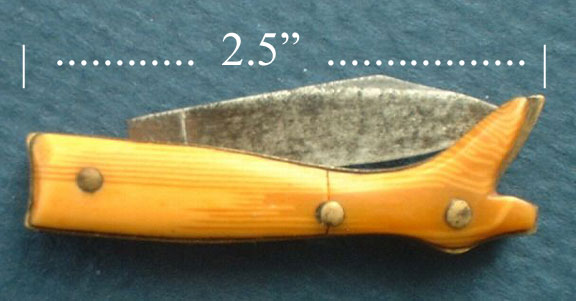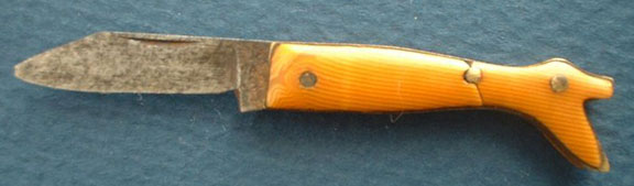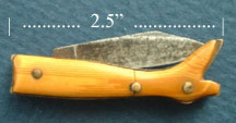 A rather neat little knife found in the bottom of a ditty bag purchased at a shambles. Less than three inches closed, it is of bone and was obviously