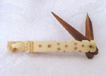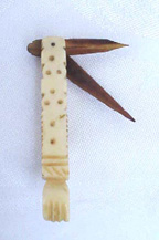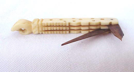 a plain bone holder. This one is done in the shape of an Albatross and has baleen bandings on the body. The crimp wheel is
