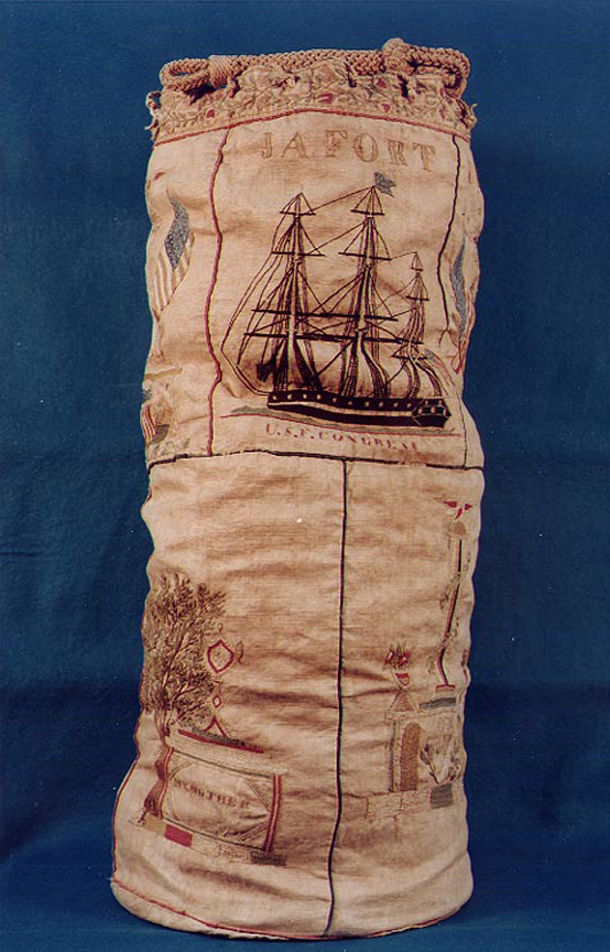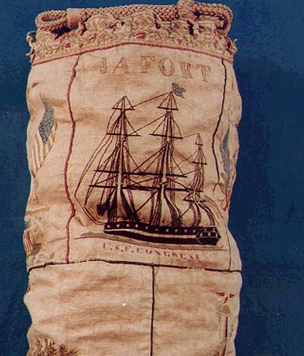 J. A. Fort was at one time a sailor aboard the USS CONGRESS and either he (or, more likely, a wife or sweetheart) embroidered this