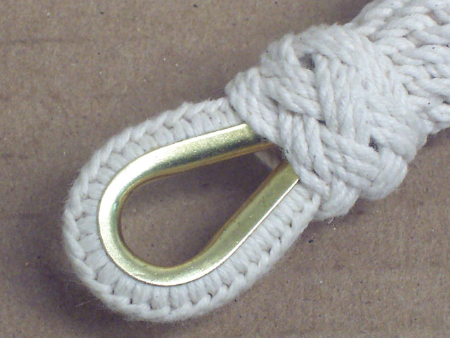 The brass thimble eye is, as are all my bellropes, enclosed by