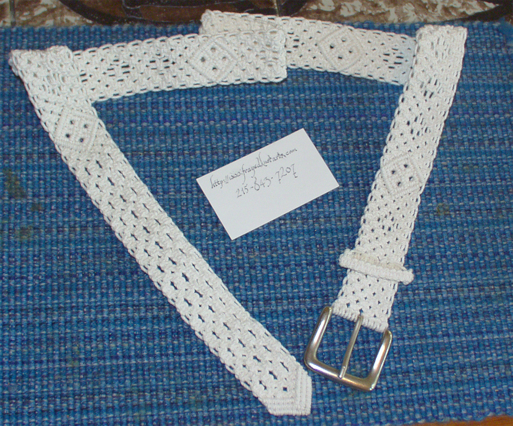 | Experiment in "zig-zag" half-hitch knotting. Time intensive! |
