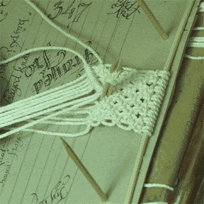 For the diamond shape, I recommend you initially used a "filled" diamond as it is much easier to hold a shape by making squareknots inside the diamond. After a while you'll want to try an "Open" Diamond similar to the treatment of the "X" in subsequent fotos.