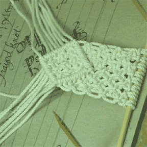 you to carry on as though there was no break at all... After a few rows, turn the work over and trim
