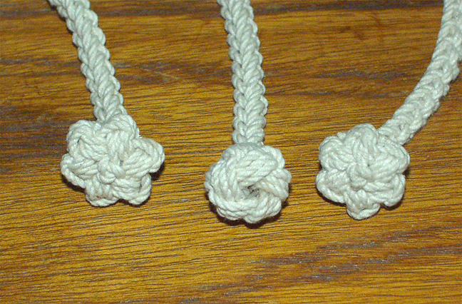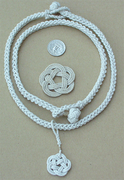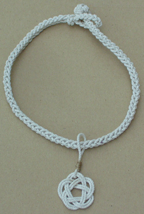 The ends which actually secure the neck/wrist/anklet are five-strand diamond knots which are quite secure. All of these are