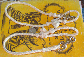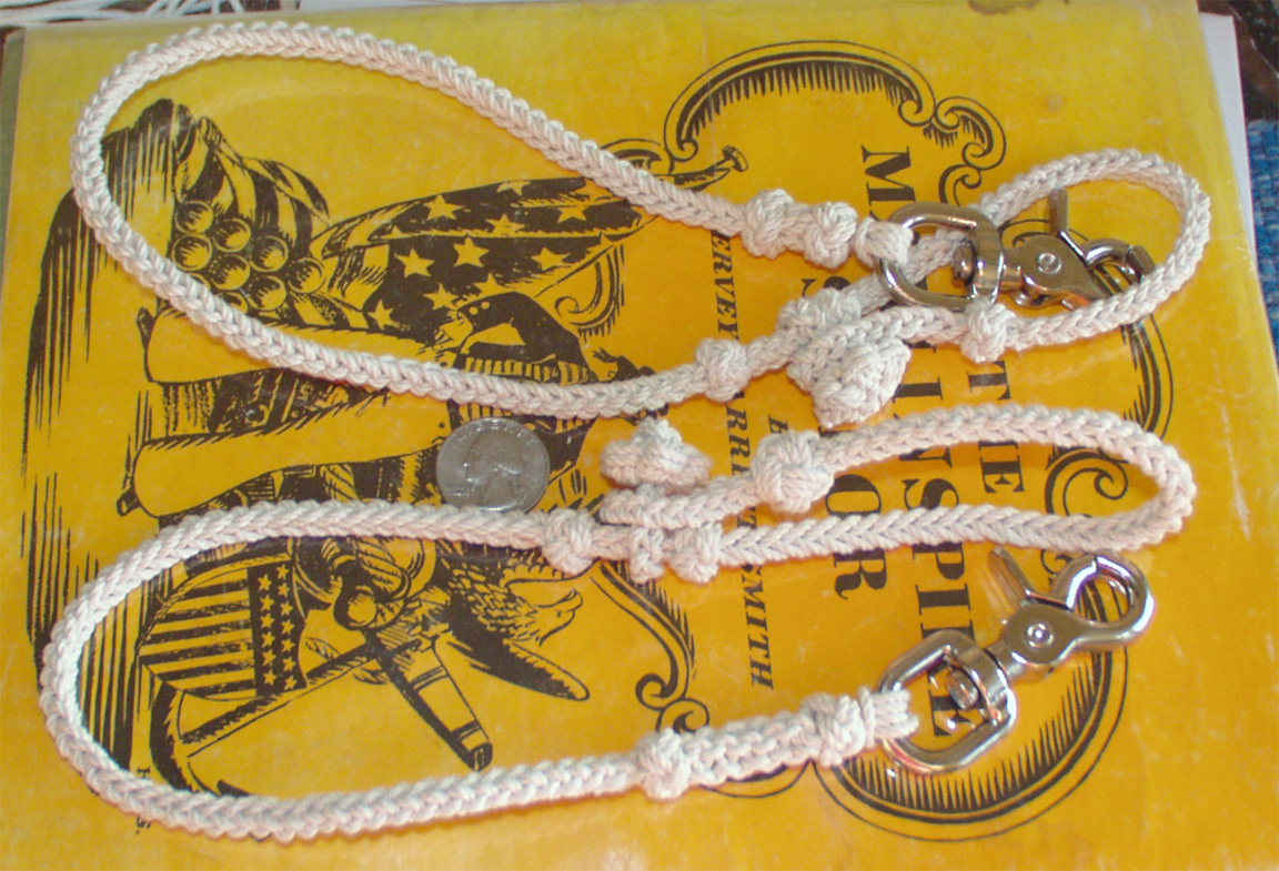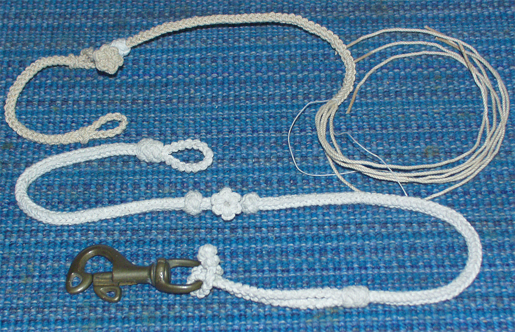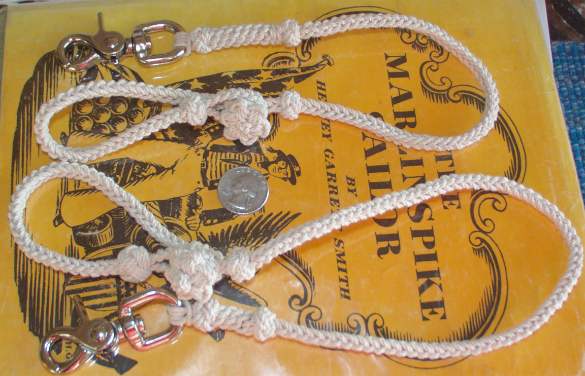 The lanyards are done of 1.4mm poly/nylon in white or #15 cotton. (Hand-laid #9 cotton codline which I have made especially for the