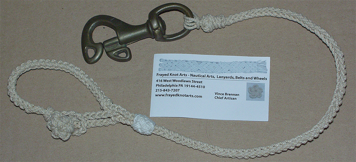 I also make knife lanyards along the lines of the Boatswain's Lanyards, except with a clip or thimble/shackle instead of the "call loop"
