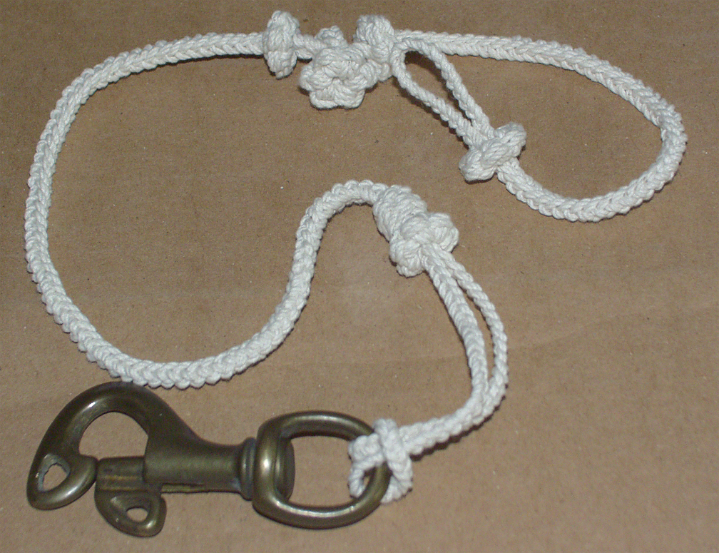 Lanyards as shown above can be made of any length and are now made with the thimble eye and a brass shackle for attachment