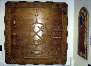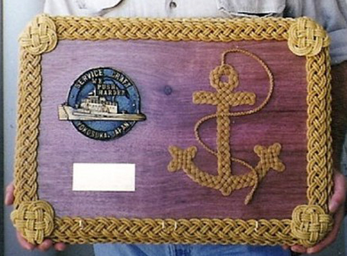 and a detail of the seventeen-braid sennit he used to make 'em, a knotboard he made for a reunion of the USS Manuel and a larger