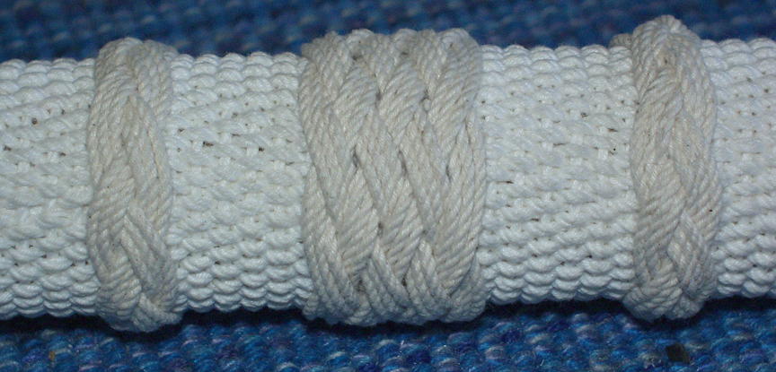 Barrel section with two 3x9 turksheads flanking a 7x6 TH.