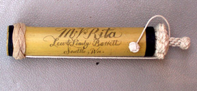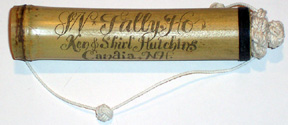 Scrimshawed into bamboo, your ship's name, your name and a homeport, or .... whatever.