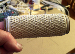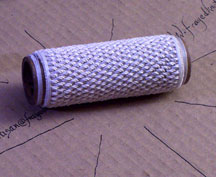 (Speaking of "going... and going... and...") I'm no longer young and I have a wicked case of T.B. (Tiny Bladder), so I know I'm not gonna get thru an entire job at one shot.... the solution is to stop the "over/under" pattern and go to an "all-over" pattern, NEATLY wrapping the entire work about four or five times and then just putting it down where it won't be disturbed: string tension will hold the work in place until you've pumped bilges.